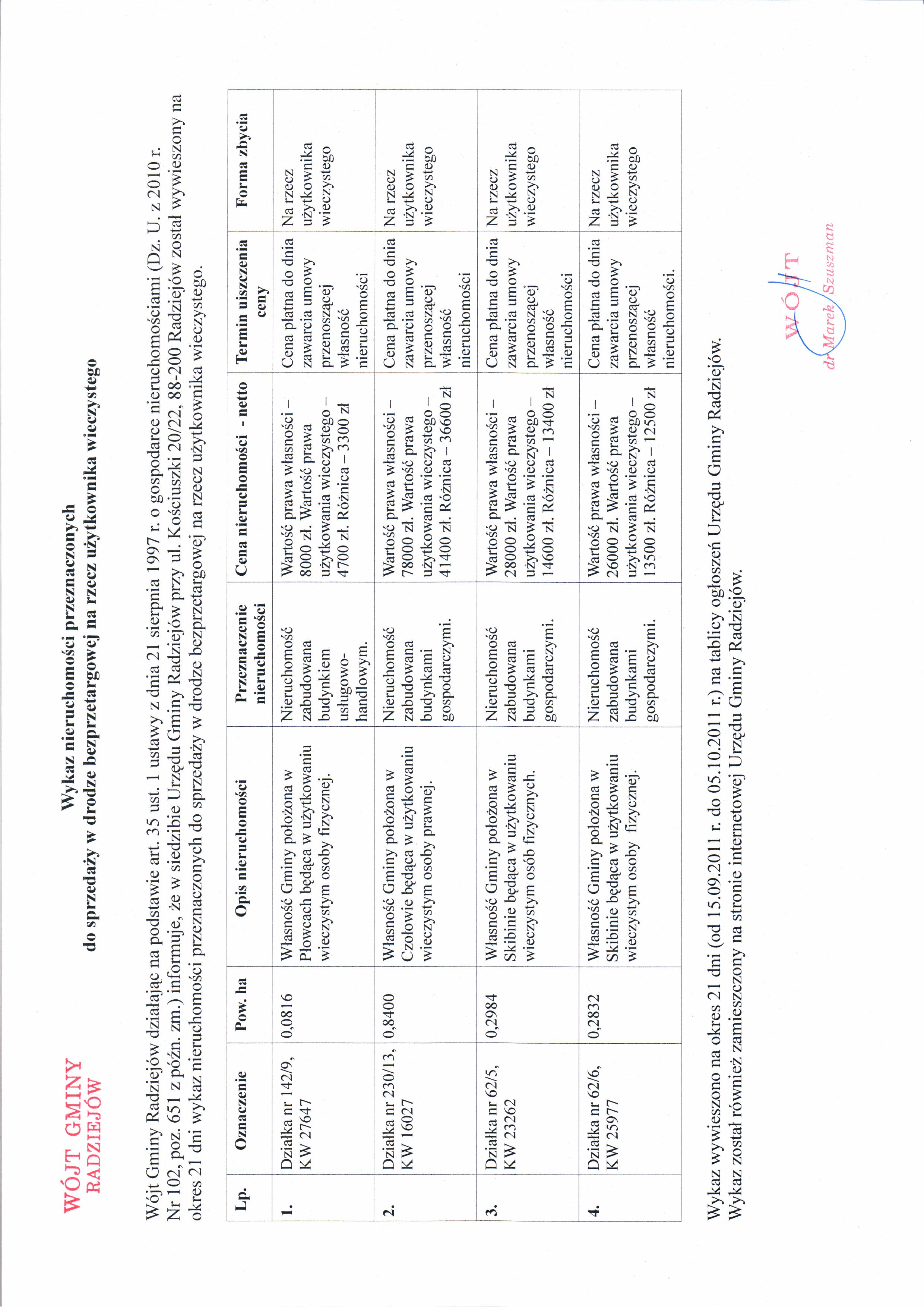 | Typ | Rozmiar | Pobierz | Komentarz | Data dodania | Licznik | graf. | 800.8 KB | POBIERZ | Wykaz nieruchomo艣ci przeznaczonych do sprzeda偶y w drodze bezprzetargowej | 2011-09-15 14:39:21 | 351 |