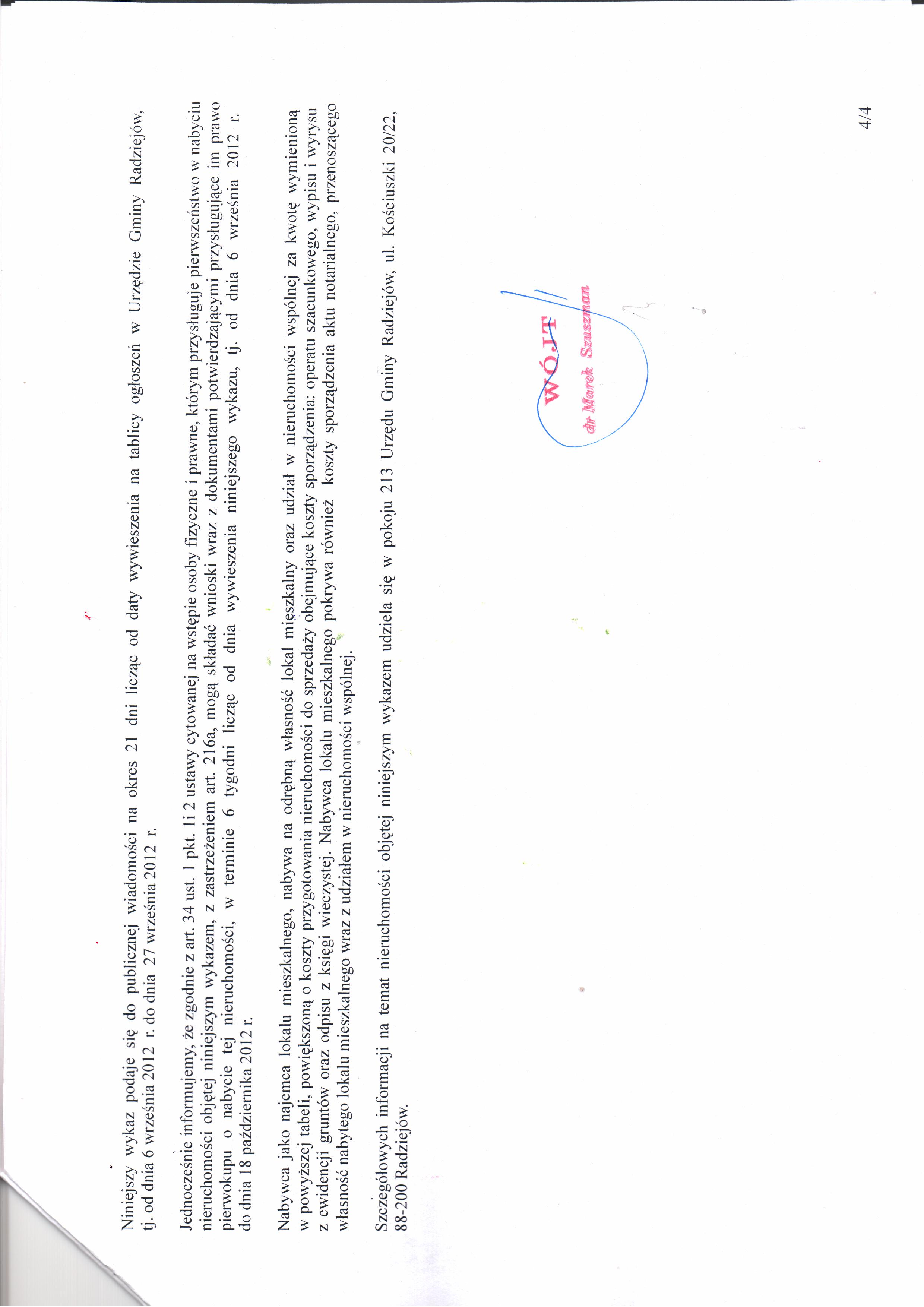 Wykaz lokali mieszkalnych przeznaczonych do sprzeda偶y w drodze bezprzetargowej na rzecz dotychczasowych najemc贸w po艂o偶onych w Radziejowie przy ul. Brzeskiej 11, na dzia艂ce nr 70/2 o pow. 0,1405 ha.