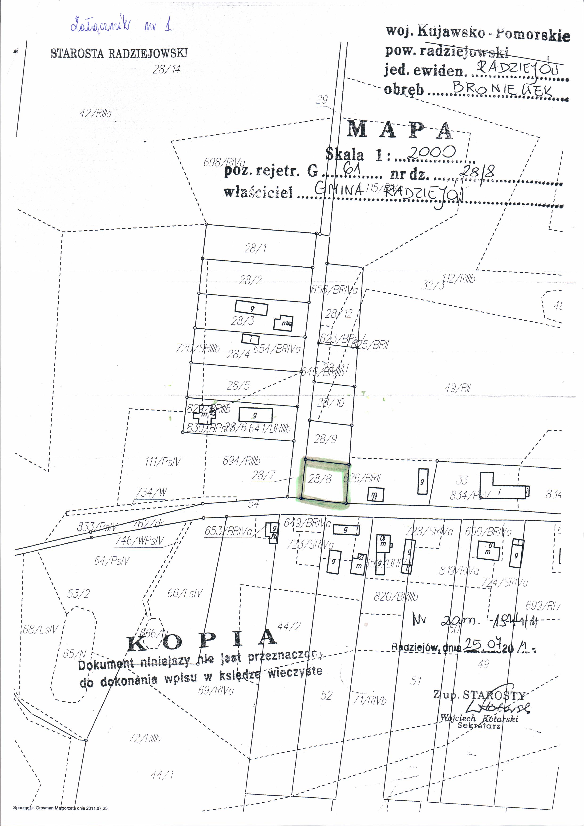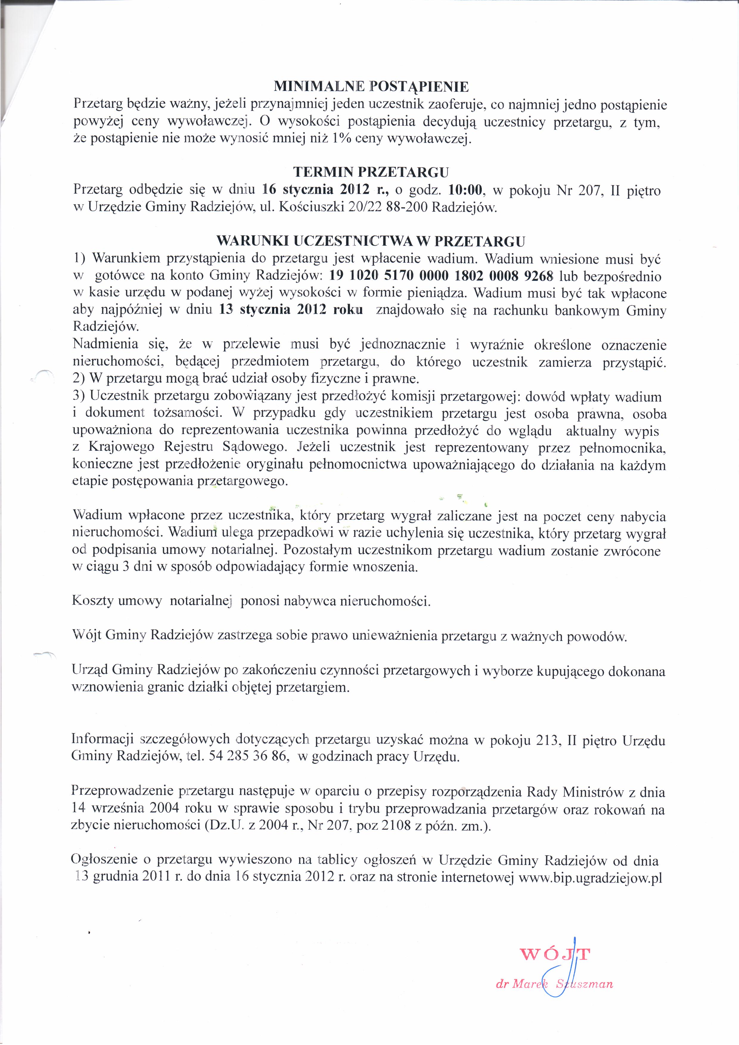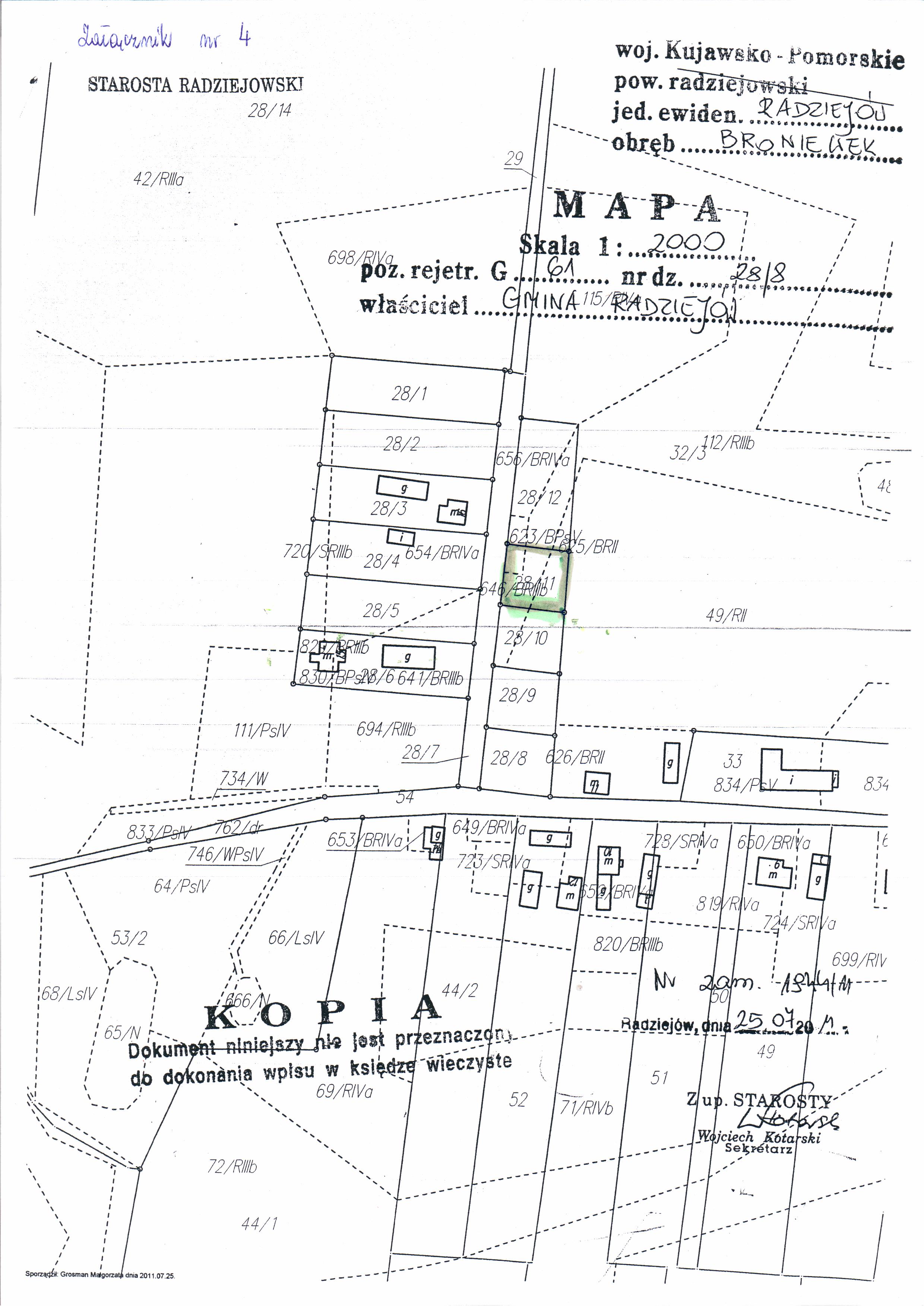 Og艂oszenie o przetargu ustnym nieograniczonym na sprzeda偶 nieruchomo艣ci niezabudowanych stanowi膮cych w艂asno艣膰 Gminy Radziej贸w po艂o偶onych w Broniewku oznaczonych w ewidencji grunt贸w jako dzia艂ki Nr 28/8, o pow. 0,0,0900 ha, 28/9 o pow. 0,0900 ha, 28/10 o pow. 0,0800 ha, 28/11 o pow. 0,0800 ha oraz 28/12 o pow. 0,1600 ha, ujawnionych w ksi臋dze wieczystej KW WL1R/00029709/0.