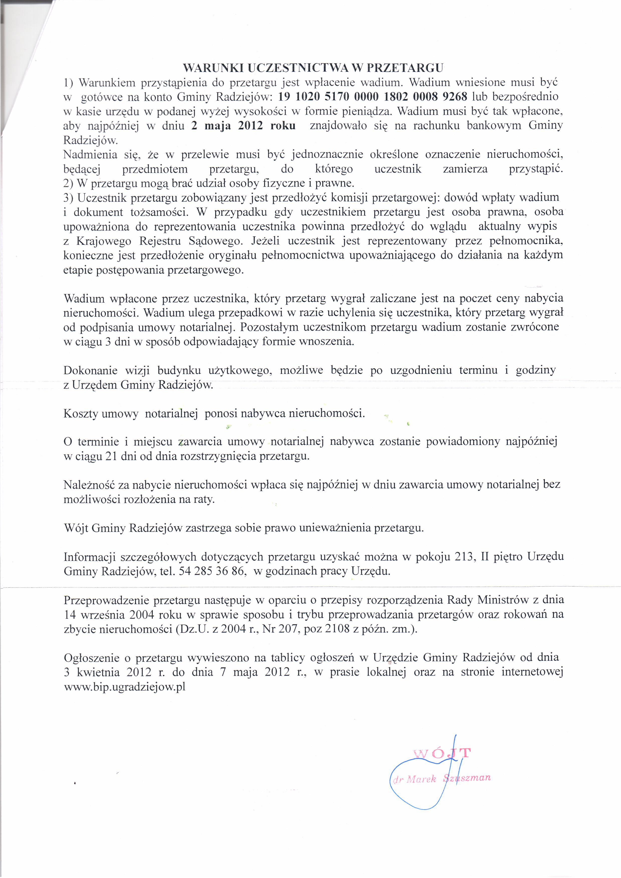 Og艂oszenie o przetargu ustnym nieograniczonym na sprzeda偶 nieruchomo艣ci gruntowej zabudowanej stanowi膮cej w艂asno艣膰 Gminy Radziej贸w po艂o偶onej przy ul. Brzeskiej 11 w Radziejowie oznaczonej w ewidencji grunt贸w jako dzia艂ka Nr 70/1, o pow. 0,0529 ha, ujawnionej w ksi臋dze wieczystej KW WL1R/00008324/4.