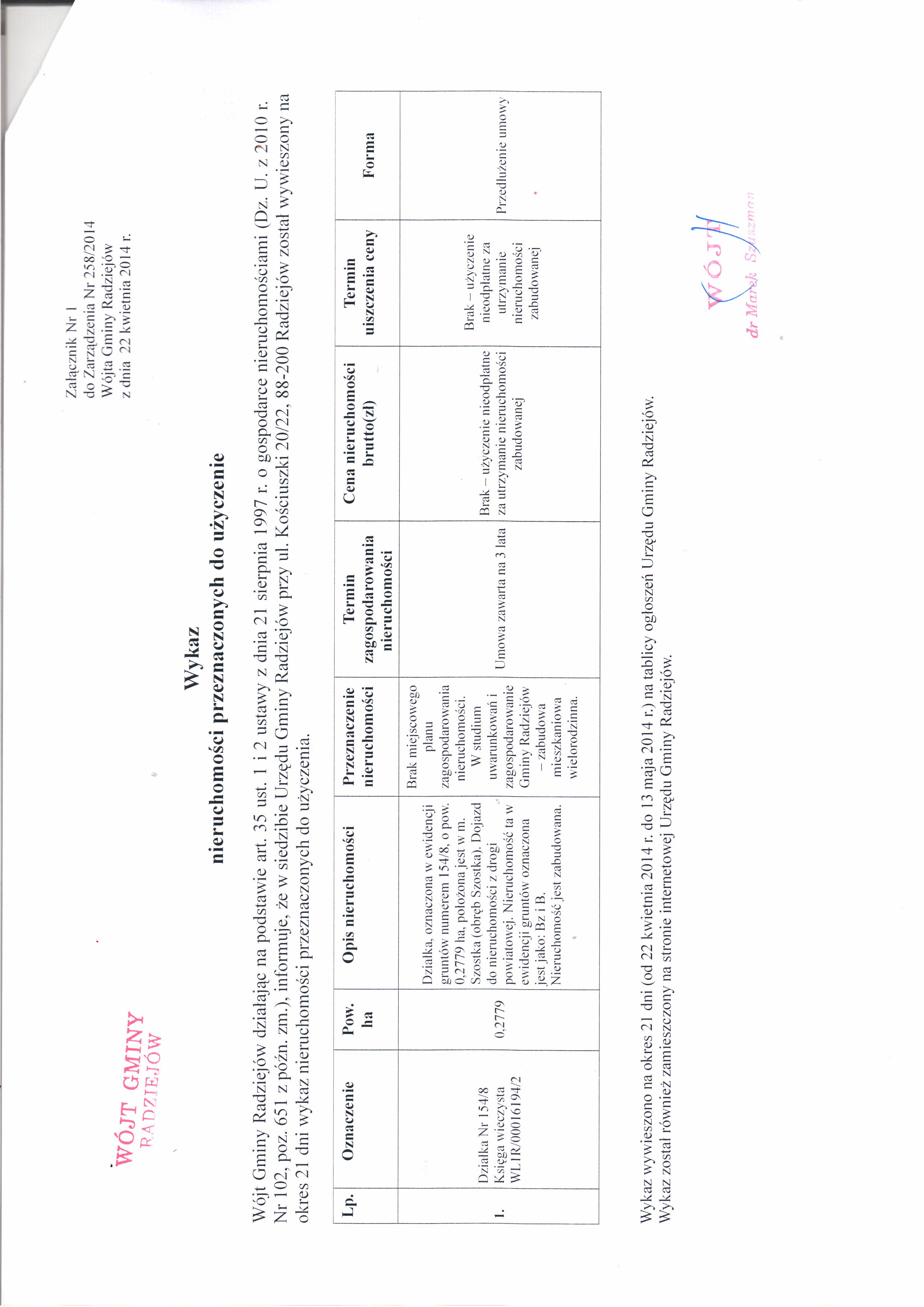 Wykaz nieruchomo艣ci przeznaczonych do u偶yczenia - dzia艂ka Nr 154/8, po艂o偶ona w miejscowo艣ci Szostka, gm. Radziej贸w.